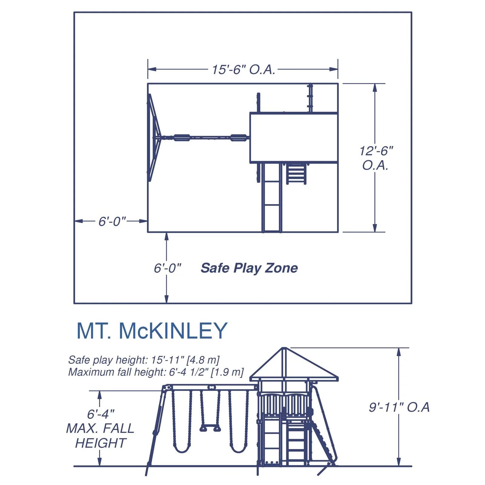 Whether they scale the rock climbing wall, scramble up the step ladder, or pull themselves up the rope ladder, your kids will feel like they reached the highest peaks on the deck of the Backyard Discovery Mount McKinley Swing Set. You don’t need an off-road vehicle to feel like you’re cruising along the Rockies, as the open wooden plank structure of the upper outdoor playhouse along with its bright green tarp roof, telescope and steering wheel allows kids to transport their imagination to a mountain range oasis. Taking a quick slide back down from the summit, you’ll store your nature souvenirs in the toy storage box, and then finish your adventure on the belt swings or swing trapeze bar.