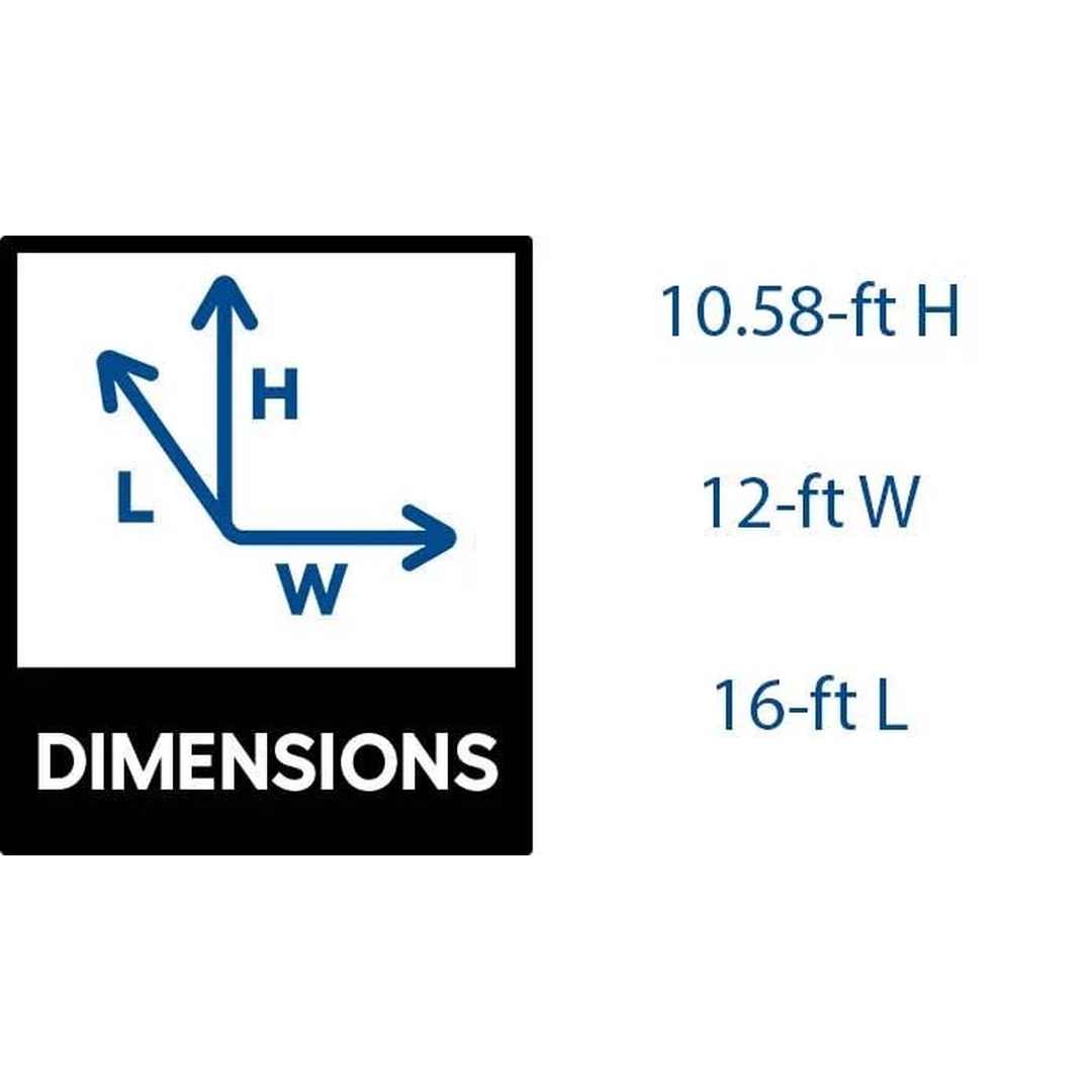 - Assembled dimensions: 144 in. W x 192 in. D x 127 in. H