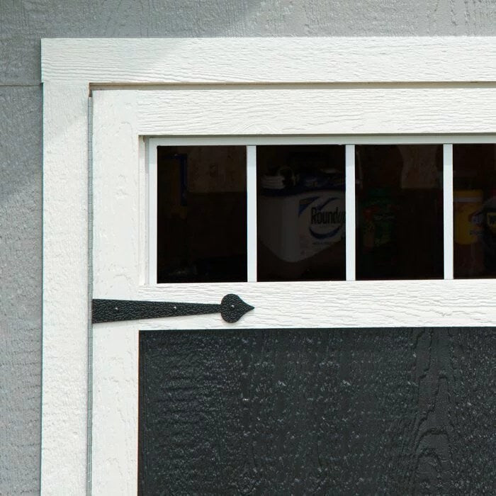 The Handy Home Windemere Do-it-yourself wood shed kit is in a class all its own – contemporary styling, extended, architectural roof overhangs, and loaded with extra features. Towering, 10 ft. high with over-sized, 7 ft. high sidewalls, this ultra-premium storage shed has it all. The treated, engineered wood siding resists fungal decay and wood-destroying insects and the choice, 2×4 wood framing provides ground-to-peak strength. Pre-hung, 56 in. wide by 6 ft. high double doors with integrated transom windows are mounted on full-length galvanized steel hinges to prevent door sagging and keep doors aligned for optimal performance. The Windemere has shed DNA but begs to be more than a storage shed. Providing 1018 cu. ft. of storage capacity, this multi-versatile wood building fits the need for storage and recreation, a creative workspace, or a lifestyle-inspired sanctuary. This wooden shed also includes a complete wood floor with treated wood floor framing and wood floor decking, deluxe window suite, appearance package, organization package, and a keyed locking handle to keep your items safe and secure. Illustrated instructions, hardware, and limited material warranty included. Paint and shingles not included (both sold separately).